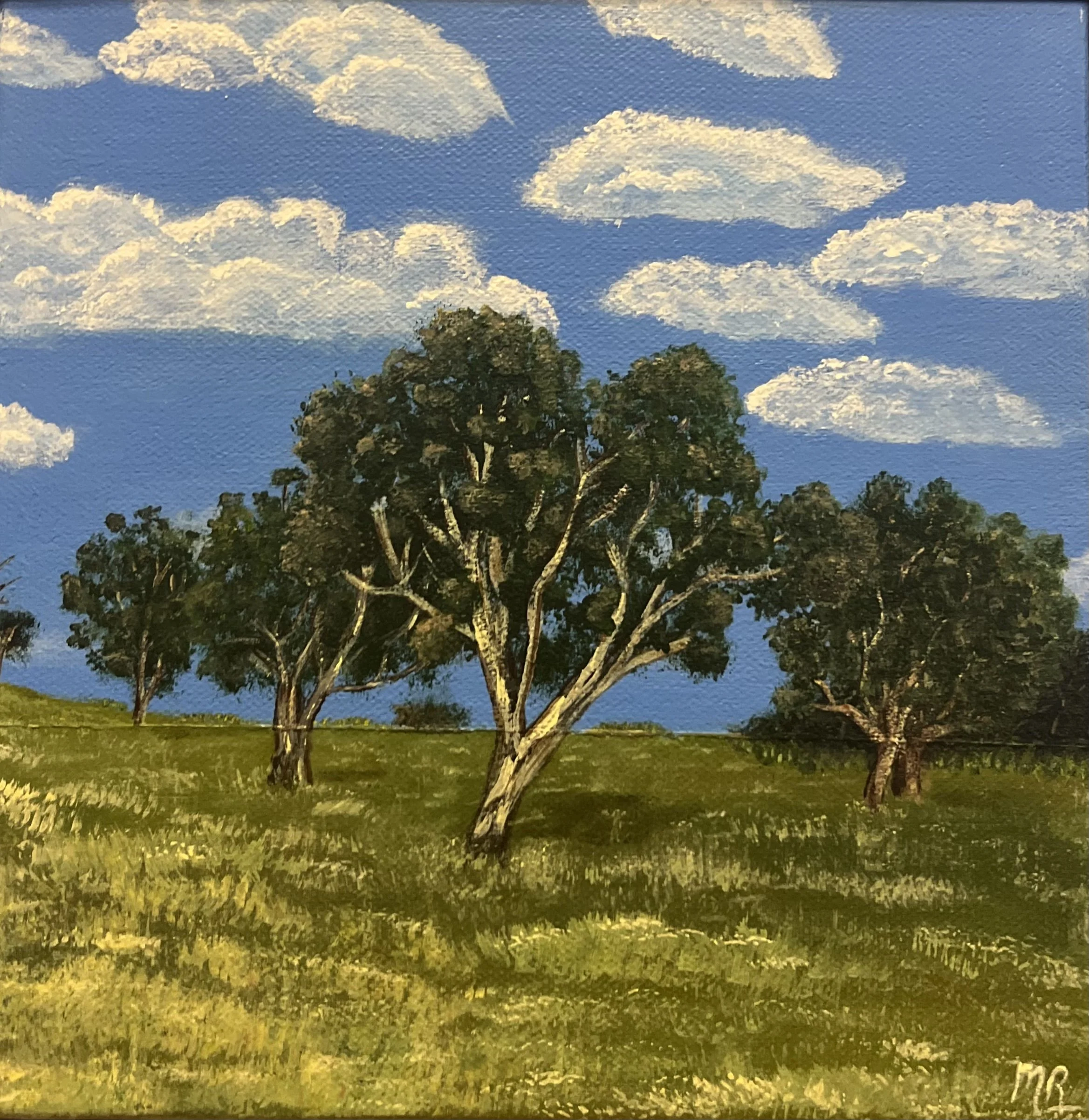 Melissa is a landscape artist based in regional New South Wales, inspired by the stillness and beauty of the countryside. Her nature-based works offer a quiet escape, inviting viewers into a space of calm and gentle reflection. Melissa’s art brings life to homes, galleries, and shared spaces, evoking peace through scenes of wide skies and rolling paddocks. Her paintings have been exhibited across four Australian states and territories, with a career highlight being her 2024 solo exhibition at Vinifera Wines Cellar Door.