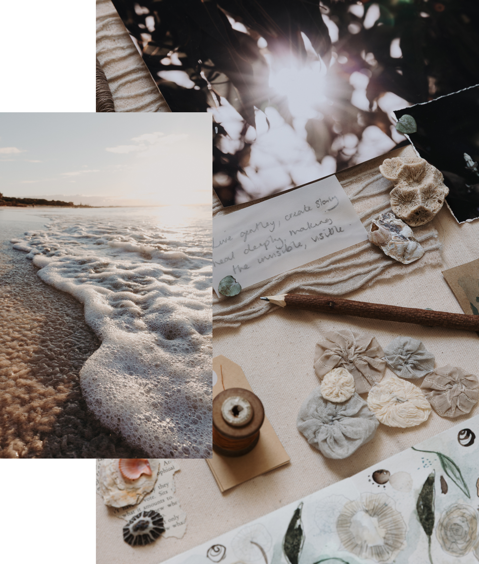 Carolyn is a Perth-based mother, holistic artist and creative guide, inspired by nature and its rhythms. Working with photography and mixed media, she creates soulful art that invites people to slow down, breathe, and notice life’s quiet beauty. Guided by mindfulness and intuition, her practice explores our connection with nature, ourselves, and each other, across generations. Through projects such as Coast to Coast, Carolyn weaves together creativity, storytelling, and ancestral wisdom, nurturing presence, reflection, and a sense of wonder.